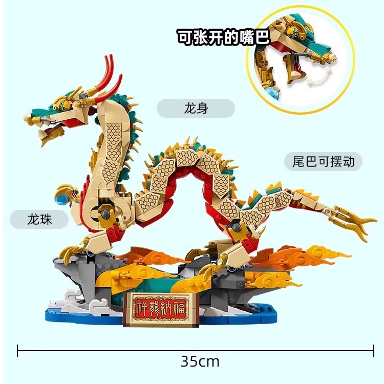 新品新年纳福积木神龙中国风新款积木拼装礼物益智摆件拼装积木龙