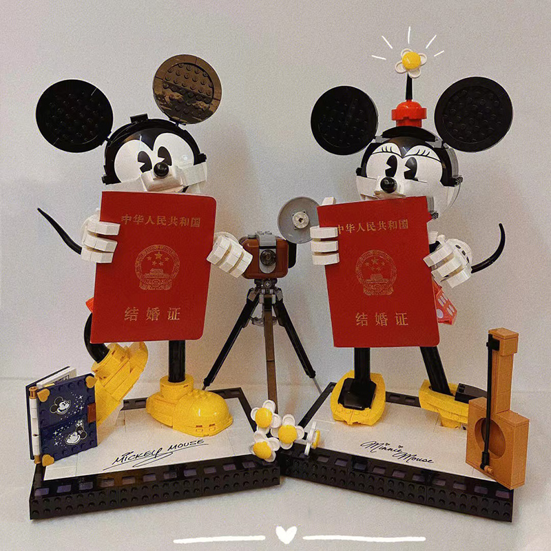 米妮米奇结婚证经典迪士尼站立玩偶玩具积木摆件女孩礼物网红七夕