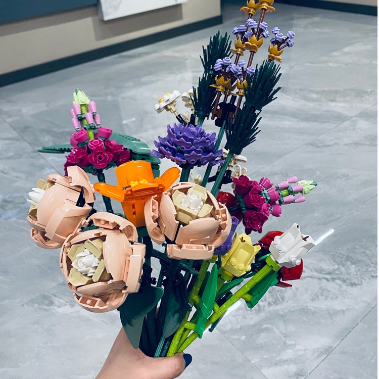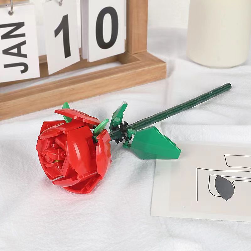 玫瑰兰繁花束积木情人节生日礼物盒家居摆件女孩益智拼装玩具